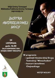 Zapraszam Państwa na swój koncert do Tereszpola na Roztoczu. Przed moim koncertem wystąpi amatorska grupa teatralna „Mimochodem” ze spektaklem,